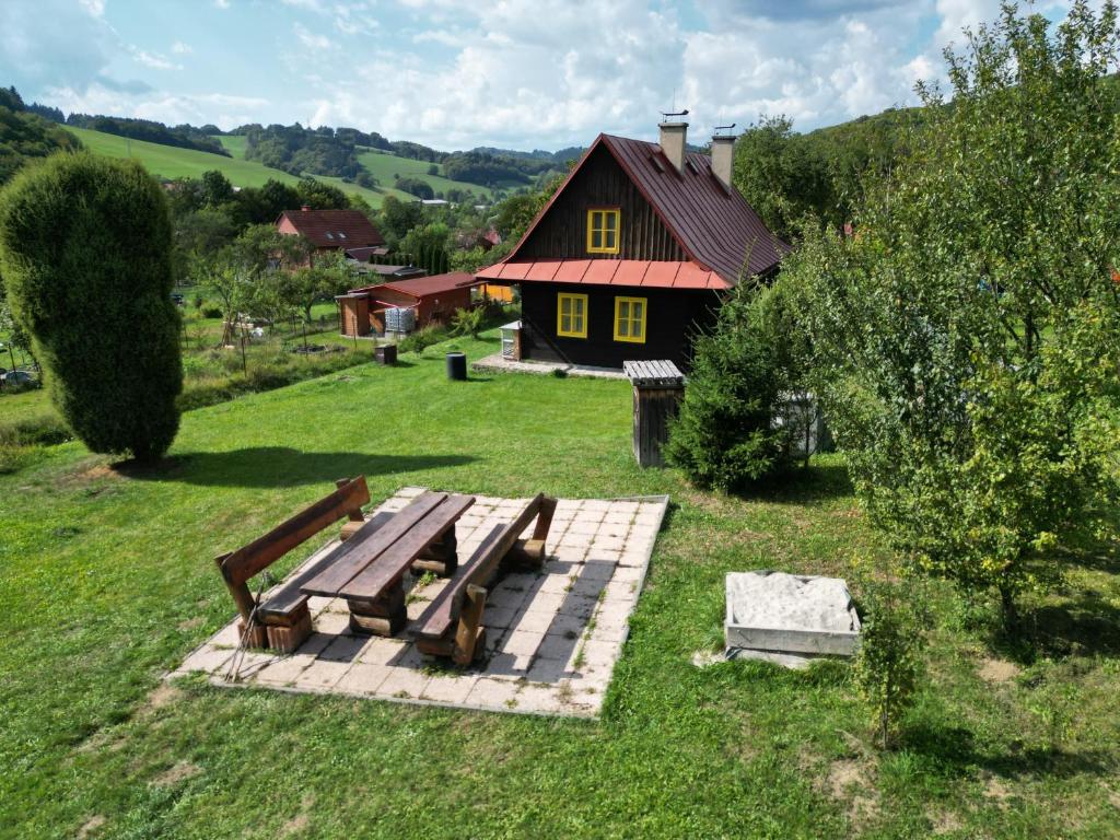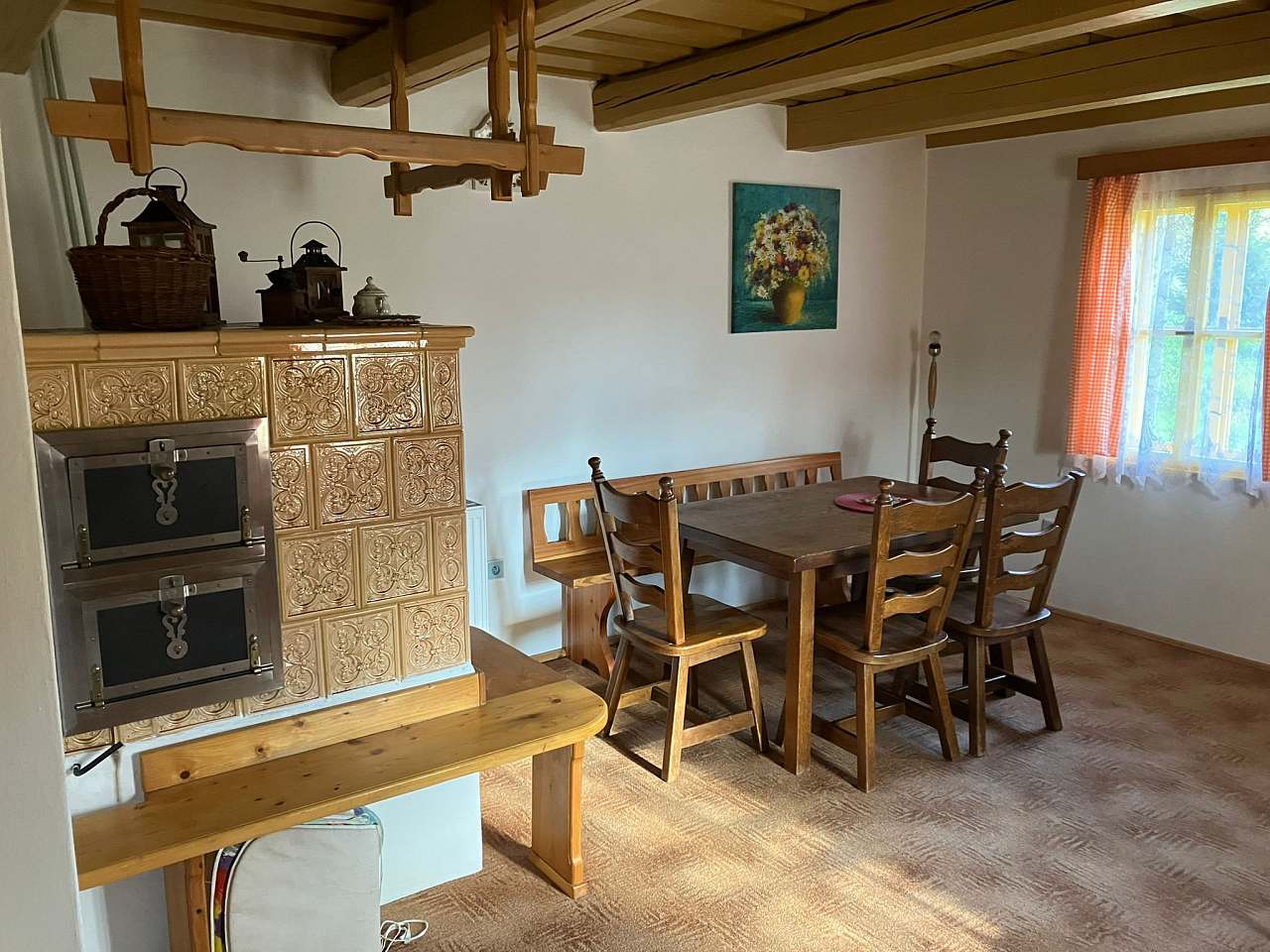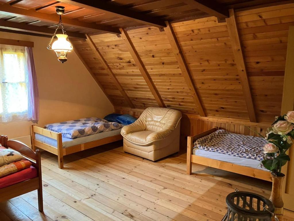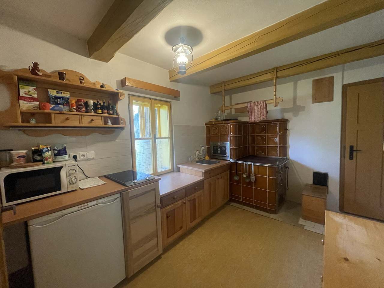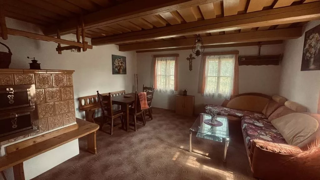 Chalupa poskytuje příjemné zázemí pro 1 až 9 osob ve třech útulných ložnicích. K dispozici je velký obývací pokoj, kuchyň vybavená kompletním nádobím, lednicí, troubou a mikrovlnnou troubou. Vytápění zajišťuje stylový krb na dřevo s rozvodem tepla do celé chalupy a kachlová kamna v kuchyni, kde si můžete uvařit i na ohni.