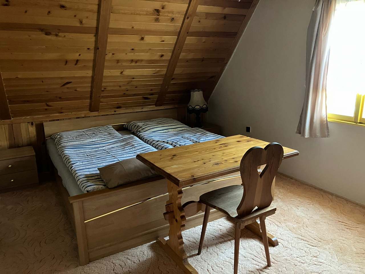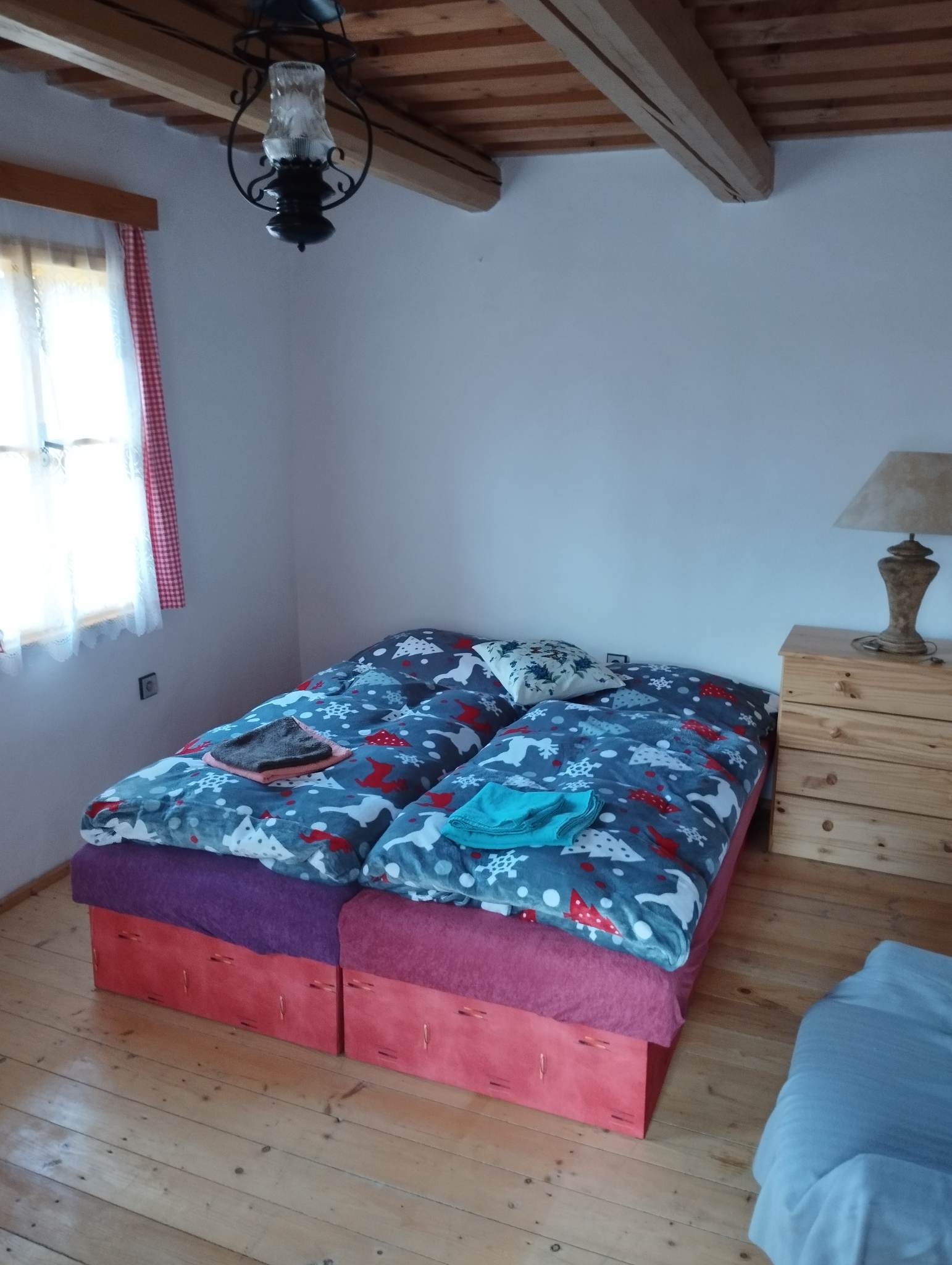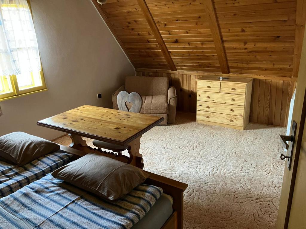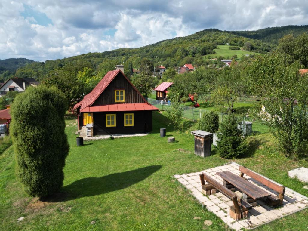 Chalupa poskytuje příjemné zázemí pro 1 až 9 osob ve třech útulných ložnicích. K dispozici je velký obývací pokoj, kuchyň vybavená kompletním nádobím, lednicí, troubou a mikrovlnnou troubou. Vytápění zajišťuje stylový krb na dřevo s rozvodem tepla do celé chalupy a kachlová kamna v kuchyni, kde si můžete uvařit i na ohni.