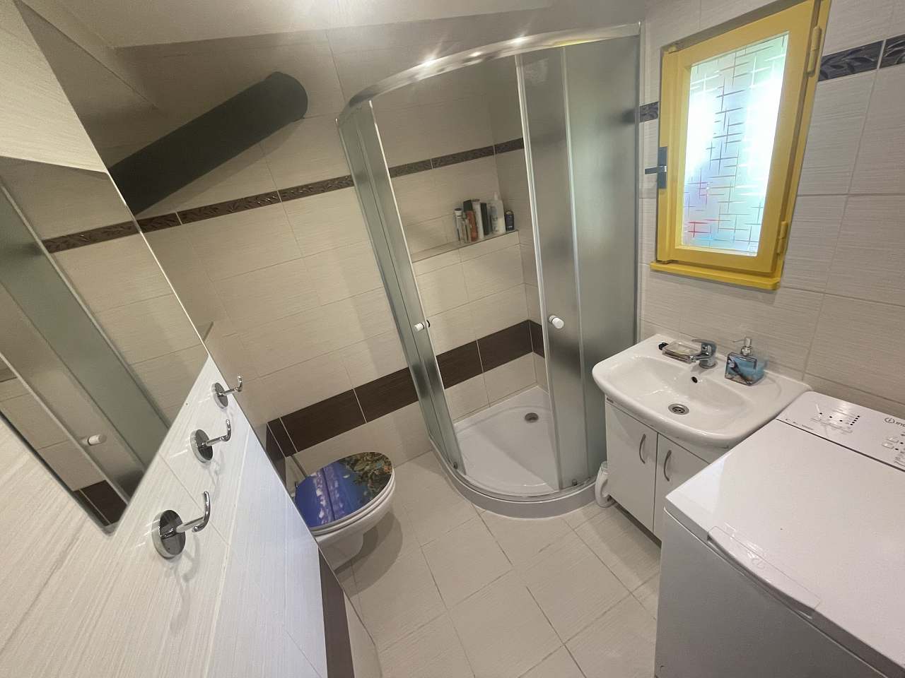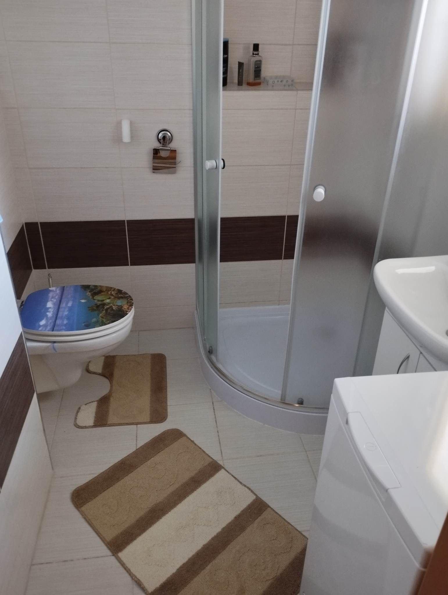 Sociální zařízení se sprchovým koutem a pračkou